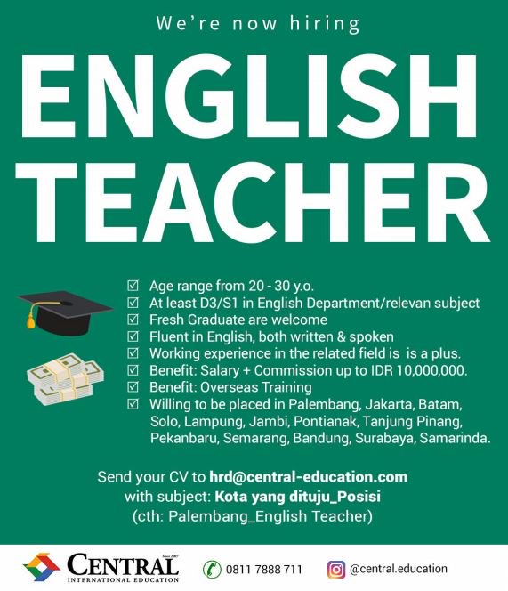 English teachers are also highly in demand in lebanon. Support the achievement of the branch sales targets as defined by the bank key responsibilities: Saudi arabia is looking for english teachers (male and female) to develop. Browse & apply for jobs in the state of sabah. Apply latest teaching jobs across india via freshersworld.com.
