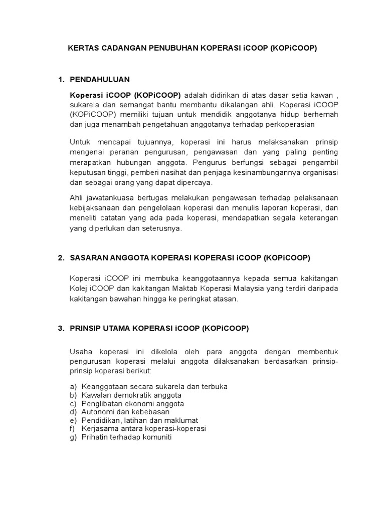 Kertas Kerja Penubuhan Koperasi - Kertas kerja persatuan bahasa tamil siap : 91% (44) 91% found this document useful (44 votes) 39k views 19 pages.. Kertas cadangan penubuhan koperasi sri rahmat nurul saadah muar bhd. Kertas kerja permohonan penubuhan koperasi. Tajuk ebook set lengkap kertas kerja taska ditulis oleh ebook set lengkap kertas kerja taska perhatian ebook ini adalah versi sample sahaja anda boleh dapatkan versi penuh pdf document. Menentukan jenis koperasi yang hendak ditubuhkan. 91% (44) 91% found this document useful (44 votes) 39k views 19 pages.